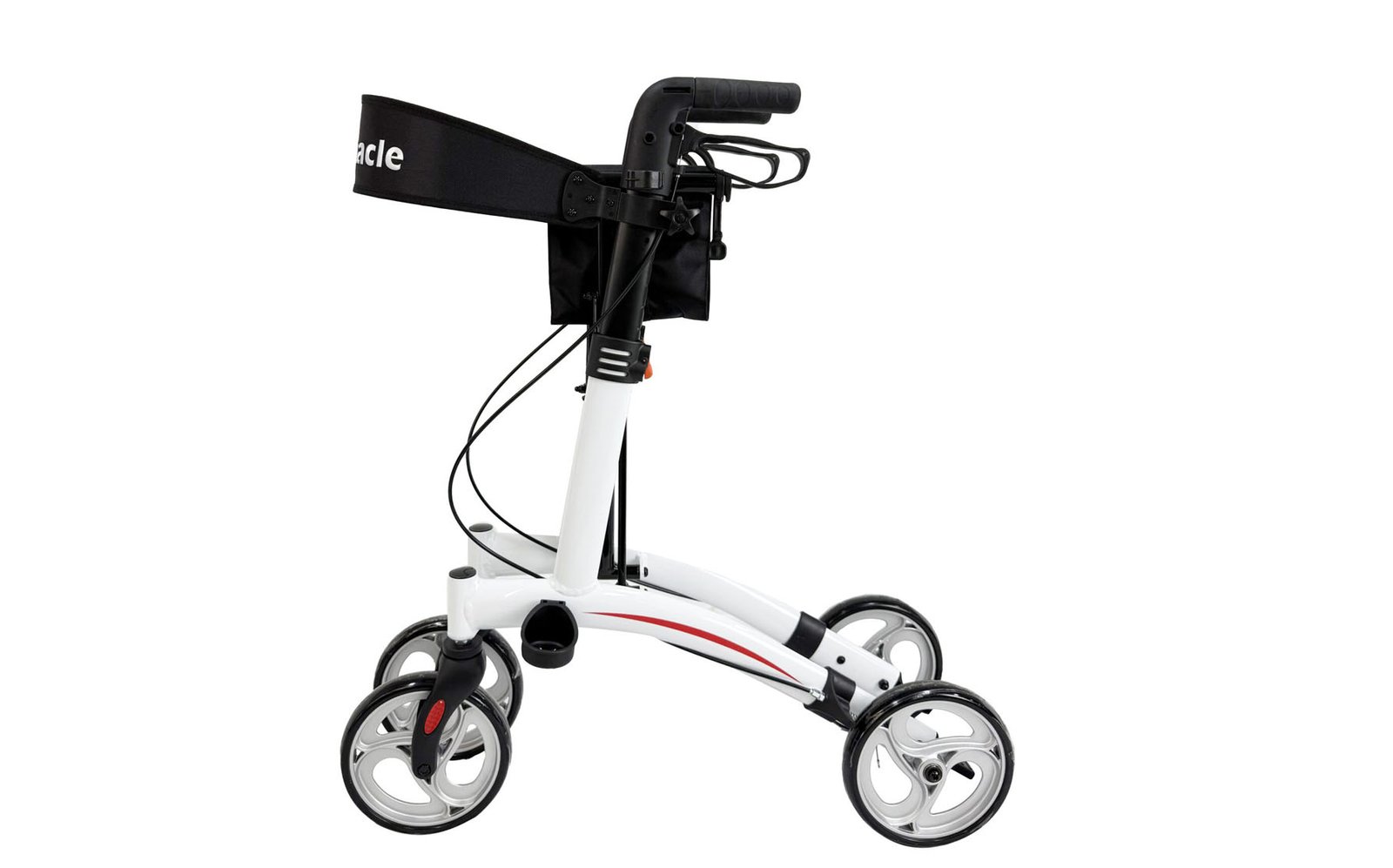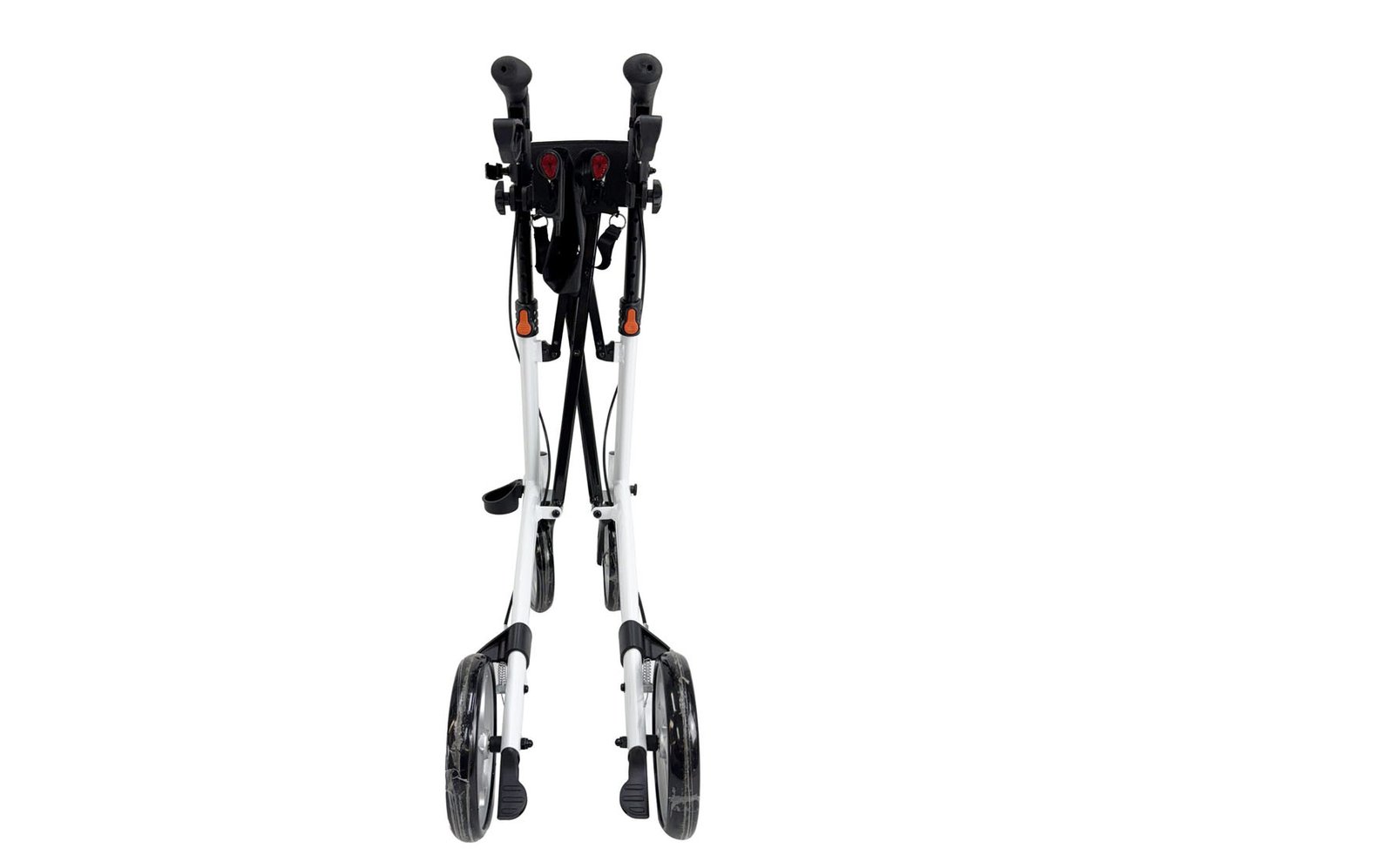 Lightweight Aluminium Frame: Four-wheeled for easy manoeuvrability and includes a detachable reflective storage bag with cross-body carry option