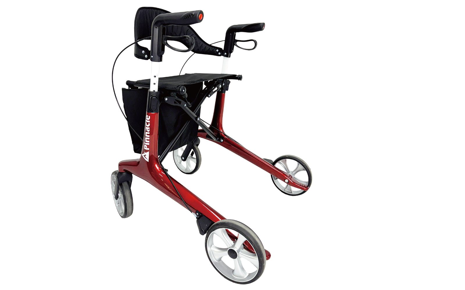 The Pinnacle Ultraflex Rollator offers durability with a ultra lightweight 5.5kg carbon fibre frame. Available in red, green, and black, its sleek design ensures smooth mobility, making it an ideal high-performance rollator for reliable portability.
