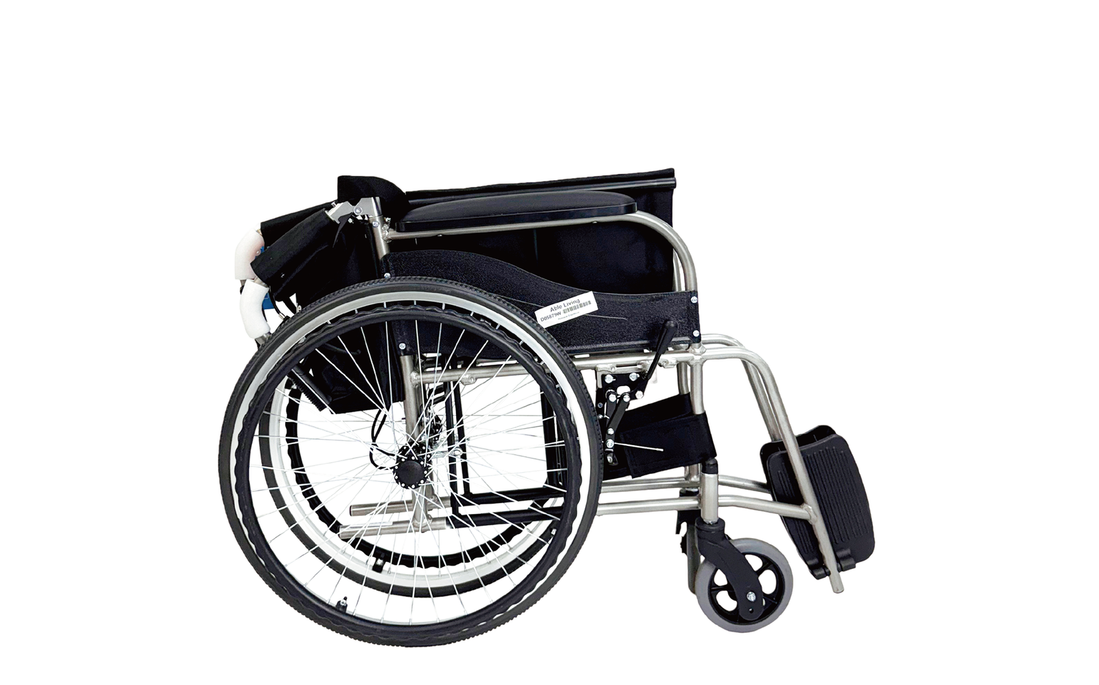 The Pinnacle ErgoMove Self-Propelling Wheelchair features a padded contoured seat for comfort, an attendant braking system for safety, and an ultralight design for easy portability and maneuverability, ideal for active users.