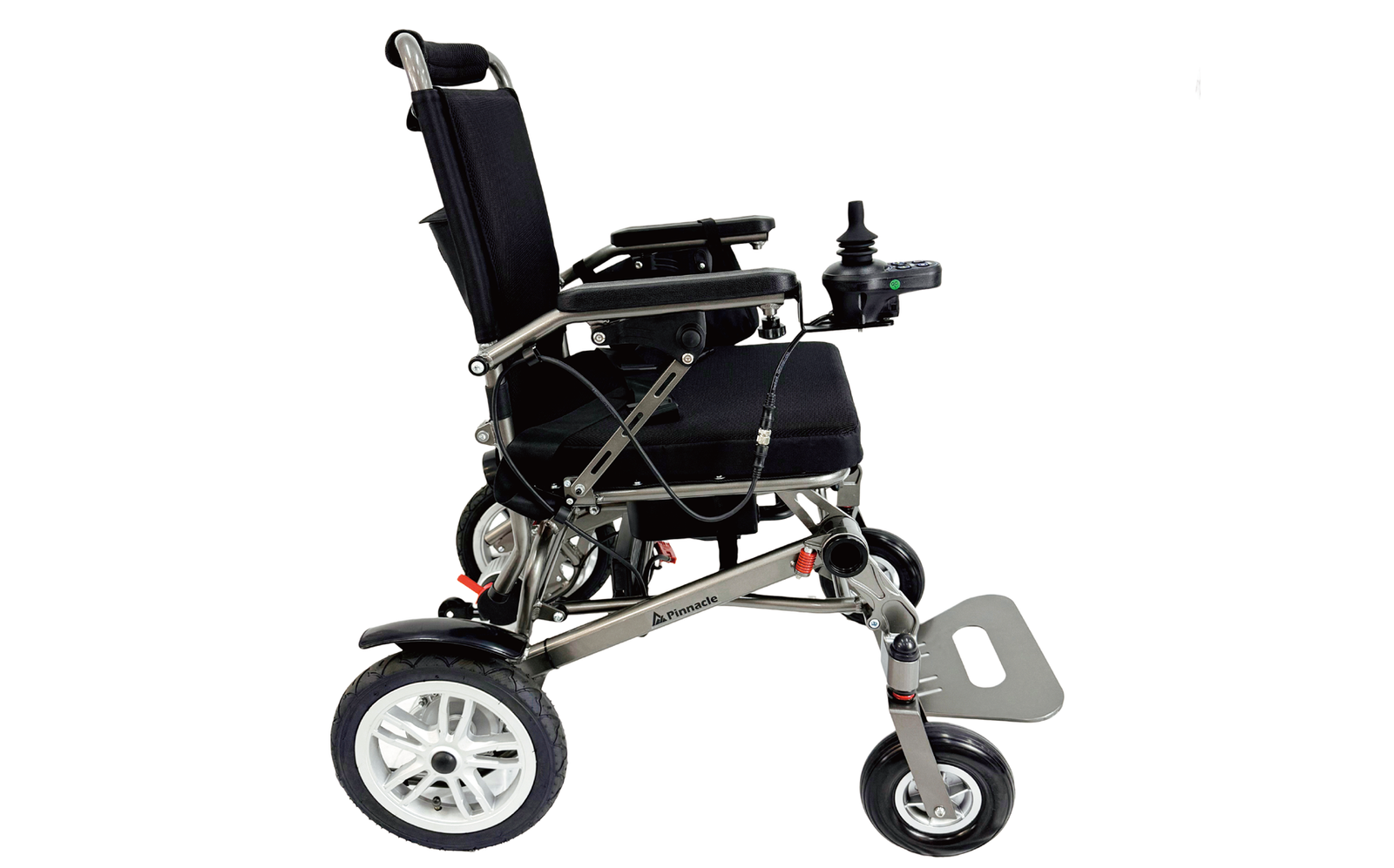 The Pinnacle Flexiglide Electric Wheelchair combines innovation and practicality with a superlight aluminium frame, quiet power system, and flip-up armrests for easy transfers. Lightweight, durable, and comfortable.