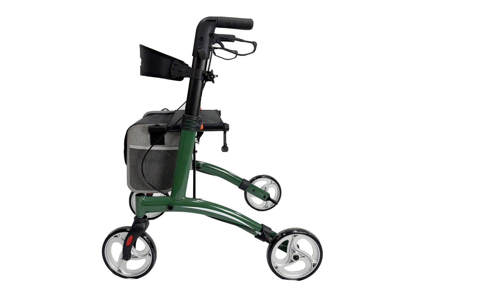 Lightweight Aluminium Frame: Four-wheeled for easy manoeuvrability and includes a detachable reflective storage bag with cross-body carry option